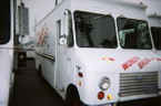 "Three large step vans {bread truck type}"